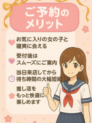 • 初めましての女の子(まだ遊んだことのない女の子)はご予約対象外となります。
